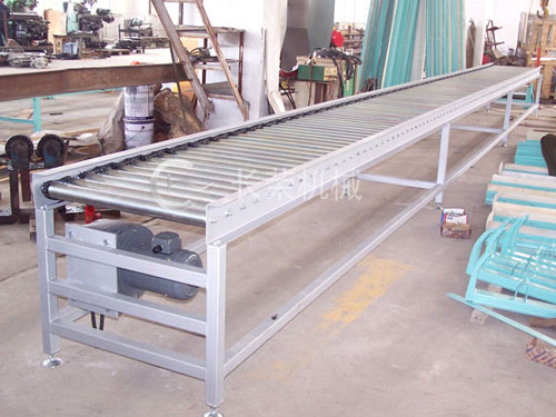 ![]() ![]() ![]() 輥?zhàn)虞斔蜋C(jī):輥?zhàn)虞斔蜋C(jī)可分為無(wú)動(dòng)力和有動(dòng)力二種,是利用輥?zhàn)拥霓D(zhuǎn)動(dòng)輸送成件物品的輸送機(jī),物體可沿水平或曲線路徑進(jìn)行輸送。具有輸送量大,運(yùn)轉(zhuǎn)輕快、噪音低、安裝維修方便、造價(jià)低等優(yōu)點(diǎn),廣泛應(yīng)用于流水生產(chǎn)線及倉(cāng)儲(chǔ)物流系統(tǒng)。
